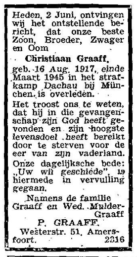 2021, updated 20-01-2022 Oorlogsslachtoffer? Ja. Verzetsman? Nee. Christiaan Graaff | Joop Mulders | Gabriëlstraat 12, Amersfoort Geen naaste familie van... | Bronnen