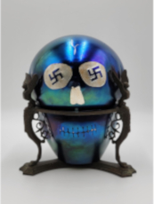"Adolf Hitler Art Glass Sculpture Mark A Hitler Austria, Mounted On Bronze RARE! Measure 10.5" x 8". This was Acquired From A 90-Year-Old Deceased WWII Vet 6 Years Ago, Currently From Mr. Bill FOut's Estate Scott City MO. Sculpture Originally Brought Back From Berchtesgaden Where Hitler Resided. Now This Is The Story That Was Told To Me By Mr. Fout Who Drove All The Way To Daytona Florida And Paid 9000.00 For it. I will Try To Gather More Info.” Given the serial number "17591"on this thing, there must be at least 17,590 other copies been made by "A. Hitler" in Austria. Now, none of the sources who have known Adolf Hitler in his days in the Austrian-Hungarian Empire (1889-1913) have ever mentioned anything about Hitler making glass art, let alone in these hugh numbers. Source: https://www.liveauctioneers.com/item/100340595_a-hitler-art-glass-sculpture-a-hitler-austria-rare To top of page.