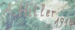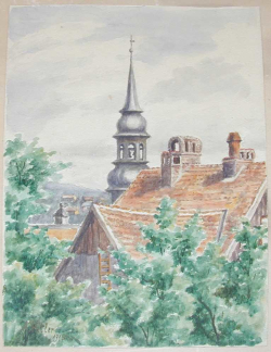 According to Snyder this work “is a view of an unidentified country church in heavy woods (most likely in the Munich, Bavaria area)”. Apparently Snyder didn't know that Hitler made only cityscapes in 1910-1914.