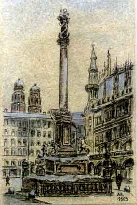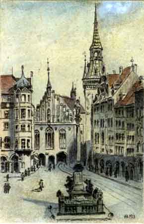 Marienplatz, München". "Size 10 x 14 cm." "Franziskanerplatz