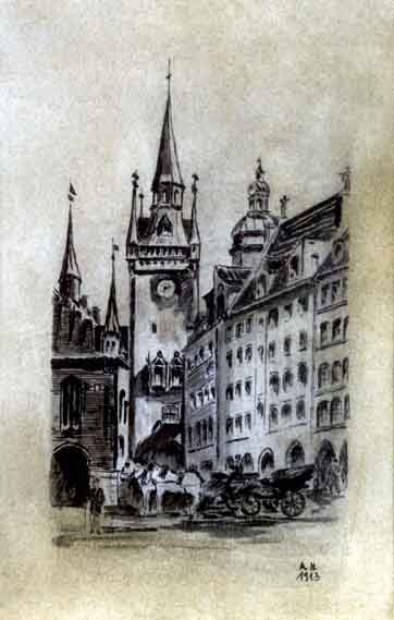 offers four "Hitlers", stating: "Thirty years ago a British collector obtained four paintings executed by the young Adolf Hitler from two different sources, and these are now offered for sale. Hitler gave two of the paintings to Helen Schwaiger, the waitress at the Munich restaurant at which he regularly ate during his first Munich period, 1913-1914, in payment of his tab; she "earned" altogether 21 paintings by Hitler in this way. [See expert report by Prof. Ernst Wilkinghoff: Facsimile in German translation There is also an expertise from Kunsthistoriker Dr K Exner]. One