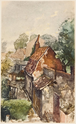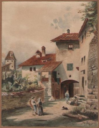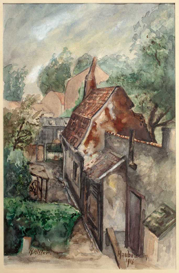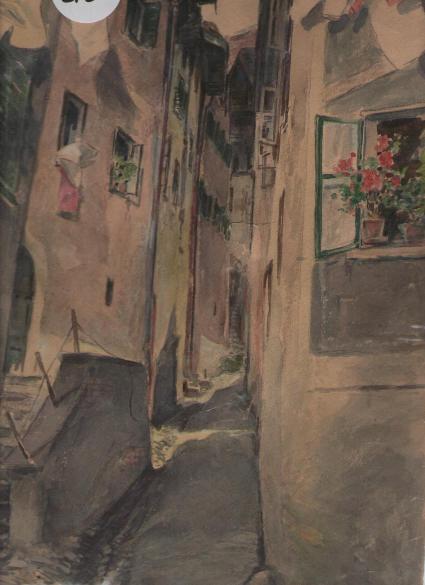£8000. Not sold.” Watercolor. Lot 497: “Attributed to Hitler Altes Dorf, shows a steep ascending, narrow street in an old village. The location is hard to pinpoint, but most likely in old Duernstein on the Danube. 43.5 x 28.5cm, watercolour on paper. Signed “A. Hitler” in bottom right. In the back partially stamped by H.O.A. Horvath, Archiv für NS Zeitgeschichte (Archive for NS Contemporary History). Guide price £6000 - £8000. Not sold.”