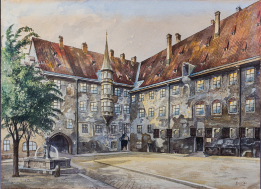 Publishing, New York, 1998. Reprint 2011. Auctions 2015 - 'Hitler' still life with Morgenstern stamp print 2015 - The fifth 'Alter Hof'? Thies, Germany. 2015 - 'Hitler' with 'Morgenstern'-seal in USA On March 26, 2015 auction house Nate D. Sanders in Los Angeles was about to auction a watercolor allegedly painted by Hitler, start price $ 30,000. Hitler would have made this work in 1912. Already in 1936 the Viennese police established that Hitler never painted still lifes - which make this work a very silly fake.