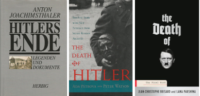 The German historian Anton Joachimsthaler published Hitlers Ende (in English: The last days of Hitler, 1997), in which he very carefully describes Hitler in the last weeks of his life, his suicide and the attempt to burn his corpse in the garden of the Reichskanzlei. He also pays extensive attention to the teeth identification, the confusing statements of the Soviets about Hitler's fate and the conspiracy theories that arose as a result. The trial that took place in 1956 in West Germany, at which Hitler was officially declared dead, is also discussed extensively. Joachimsthaler quotes abundantly from the testimonies of SS men who were involved in the attempt to cremate Hitler's and Eva Braun's remains. Most of these SS men were captured by the Soviets at the beginning of May 1945 and only released in 1955 after extensive and sometimes even maddening interrogations