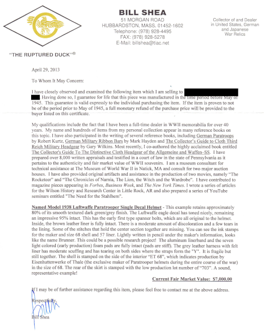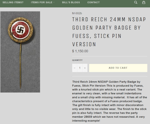 Mr. Shea choose to respond. I have been buying selling and collecting WWII memorabilia for 60 years and have handled hundreds of thousands of items. Once in a while, an item has slipped by me and my loyal followers are quick to let me know and I immediately remove it from my website and study the item as there is always something to be learned. If I make an occasional mistake, I quickly correct the error. Every item I sell is backed by my written lifetime money back guarantee just as the example displayed in this article. I have less than a 1/10th of 1% return rate on items I have sold over the last six decades. The stick pin referenced in this article was initially exposed as a fake. I immediately removed it from my website, www.therupturedduck.com, to study it. It was purchased directly from the son of a US Army WWII veteran so I had good reason to believe it was an original example. Subsequently, I did have a Dutch collector contact me stating this was indeed an original example. Perhaps he will read this article and provide additional input. Mr. Rivett takes issue with the verbiage in my Certificates of Authenticity. Perhaps he does not understand the purpose of the COA is to provide as much detail as possible regarding the qualifications of the individual who is writing it. I have provided evaluations which have proven the test of time and have even been used in court cases to resolve disputes. I have no idea how other dealers word their written guarantees. I can assure your readers that these are my words backed up by thousands of satisfied customers. My reference book series, THE STORIES BEHIND THE TREASURES OF WORLD WAR II, have been extremely well received. I would ask your readers to look them up on Amazon and spent a few minutes to read the dozens of reviews. Let my readers do the talking for me. Lastly, Mr.
