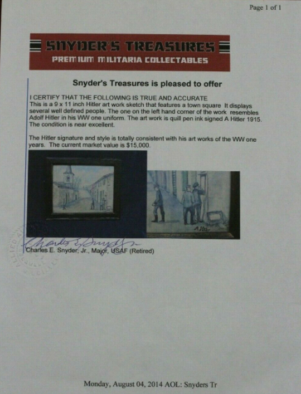 EBay has clear policies on the sale of artworks and objects with autographs/signatures. In our opinion the offering of this fake Hitler is a clear violation of all relevant eBay policies.