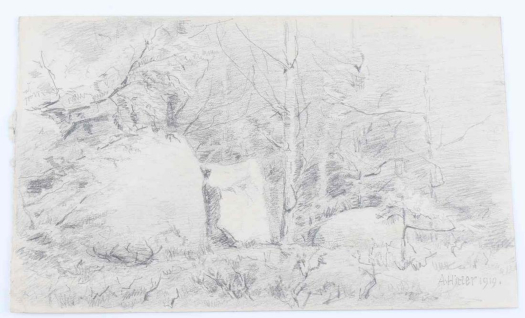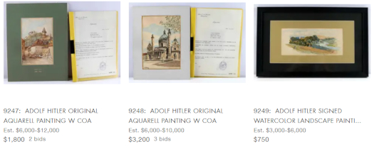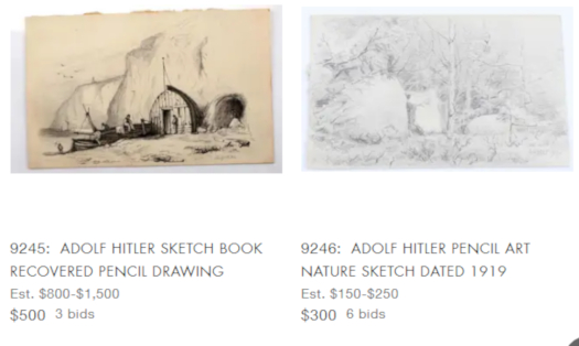 Lot 9246: "Adolf Hitler Pencil art Nature Sketch Dated 1919". Start price ca. $200; estimated at $150 - $250. Buyers premium 18%. Comment by Droog
