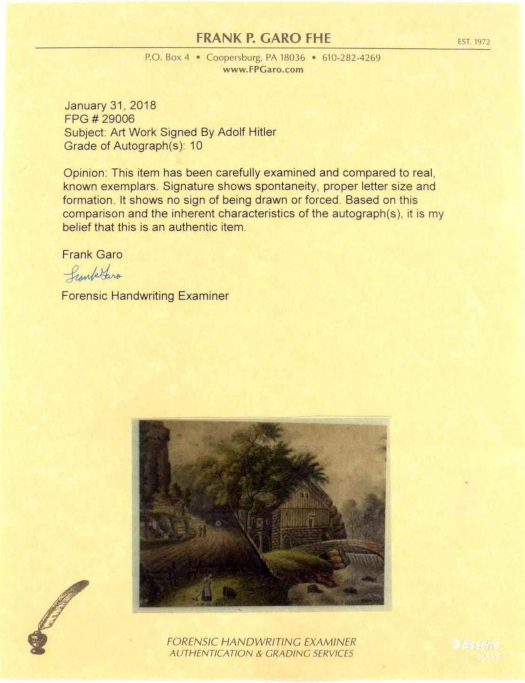 P. Garo. Lot 1324: "Adolf Hitler watercolor