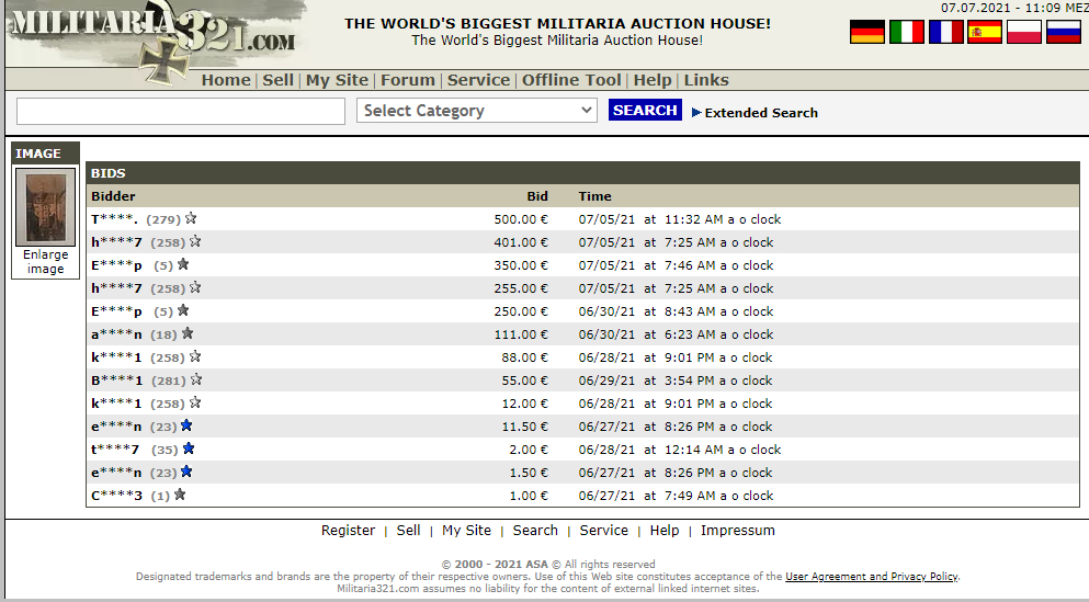 based auction house Militaria 321.com offered