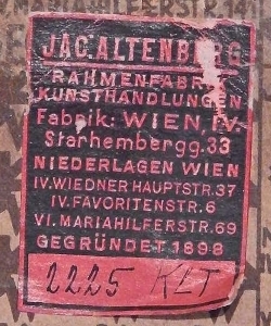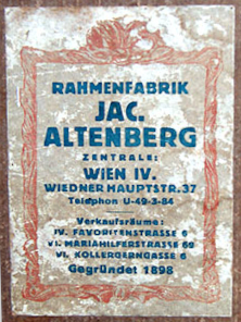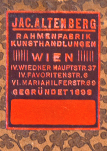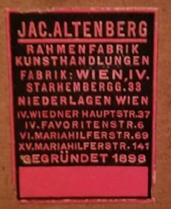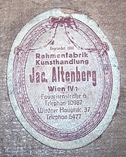1984. https://www.bartfmdroog.com/droog/niod/morgenstern-zegel.html#hrzen Photos of other Altenberg seals. Courtesy Catawiki, Marktplaats and:. http://legacy1.seier.at/contenido_43_beta/schildersammler/front_content.php?client=25&lang=14&idcat=419&idart=5101&m=&s= https://www.1stdibs.com/furniture/wall-decorations/paintings/secessionist-scene-tyrol-brilliant-fauvist-painting-austria/id-f_4495523/ https://www.bukowskis.com/en/lots/1009734-unknown-artist-four-silk-paintings-20th-century Online Auction catalog Mullock's Auctions, 27-02-2021. https://www.mullocksauctions.co.uk/lot-749494-attributed_adolf_hitler_artwork_within_jacob_altenberg_marke.html https://www.mullocksauctions.co.uk/lot-749495-beechwood_easel_franz_drury_munich_attributed.html