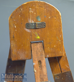Description by auctioneer: "Beechwood Easel by Franz Drury of Munich attributed to being Adolf Hitler’s – Liberated by an Anglo American Liason Officer from the Brown House – Hitlers Bavarian HQ in 1945. Accompanied with a hand written letter dated July 1979 by the brother of the Officer ‘This is to inform that the easel…was taken by my brother, Captain GF Watman from Adolf Hitler’s Nazi HQ at Munich in 1945…when he was an Anglo American Liason Officer with the US Forces liberating Berlin. The item is the untouched artist’s easel that the young Adolf Hitler used when he was an art student. This was told to my brother by a Nazi party Woman curator of the Brown House Museum. She was discovered living in a basement and led the troops to where she and the SS had hidden the items from the museum from the liberating forces. She did this, according to my brother because she needed to provide for a young son she had given birth to. According to my brother there were many items in the museum basement including Hitler’s pistol, an ornate ring and photographs of him. All were taken by the US Forces. My brother took the easel and mailed it back to himself on Forces post. It arrived safely!!’, with the maker’s plaque to the easel, measures 117cm approx. Guide price £4000 - £6000. Not sold.” Comment by Droog Magazine: Hitler never was an art student. He