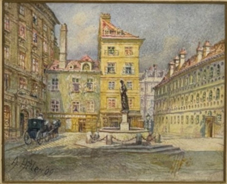 with "amazing provenance"? Lot 0300: "Adolf Hitler Watercolor Painting - Amazing Provenance." Start price €10,000. Description by auctioneer: “Original watercolor by Adolf Hitler taken from the Berghof, painted in 1909 during his years in Vienna [1]. The painting measures around 11 cm x 9 cm and the frame is about 22 cm x 20 cm. This was obtained from a lifelong resident of Berchtesgaden and filmmaker who became acquainted with many of Hitler's friends and associates over the last 50 years. He’s acquired many items from these acquaintances and has mostly kept them under lock and key, never discussing their existence with anyone outside of his family. [2] He acquired this painting from the